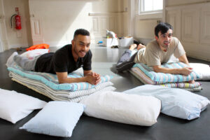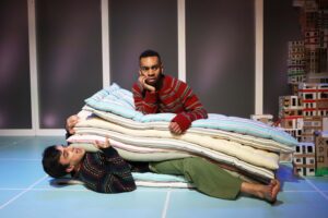 It is about how play, laughter and imagination create a home. At the beginning of the play, the boys in the bed are hungry and timid; they are a little bit lost. They know where they’ve come from, but have no idea where they are. As they relive their journey through silliness and play, the room they have found themselves in comes to feel warmer, more welcoming. As they play together, and bond through their nighttime adventures, they increasingly feel at home.