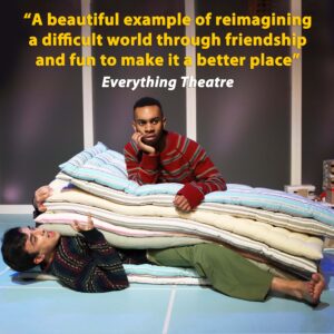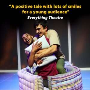 “Delightful new production… For many, this may have been their first experience of live theatre, and it was clearly an extremely positive one… An entertaining production that offers young audiences an insight into the refugee experience in a sensitive and thought-provoking way. Perfectly striking the balance between fun and frightening, it brilliantly demonstrates the healing power of play.”